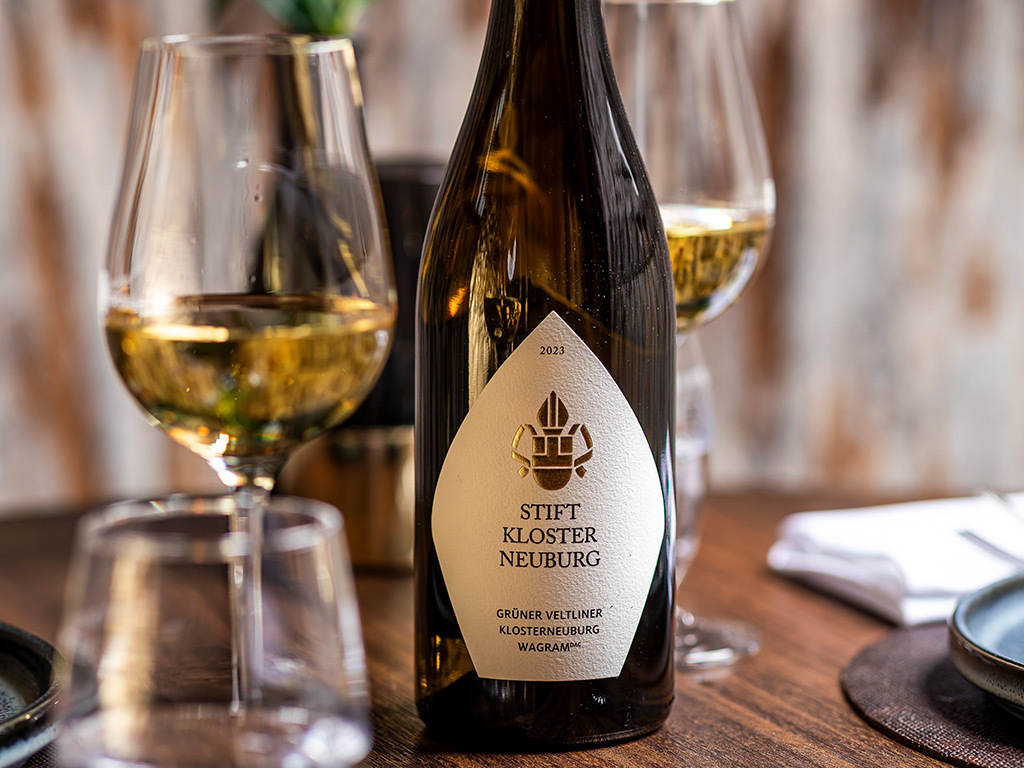 Maak uw diner compleet met de Stift Klosterneuburg Grüner Veltliner. De frisse citrus nuances en lichte kruidigheid passen perfect bij de zachte, romige smaken van asperges.
